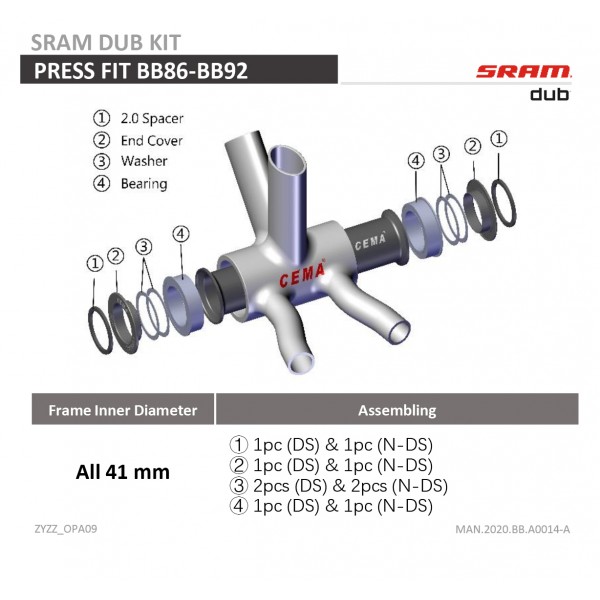 Frame = W: 86,5-89,5 of 92 mm x ID: 41 mm